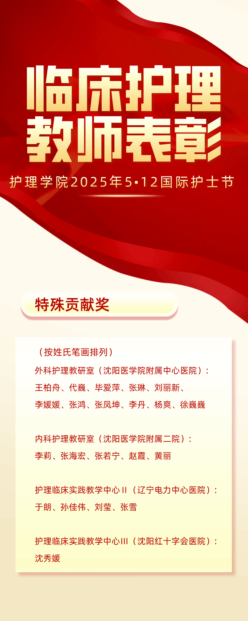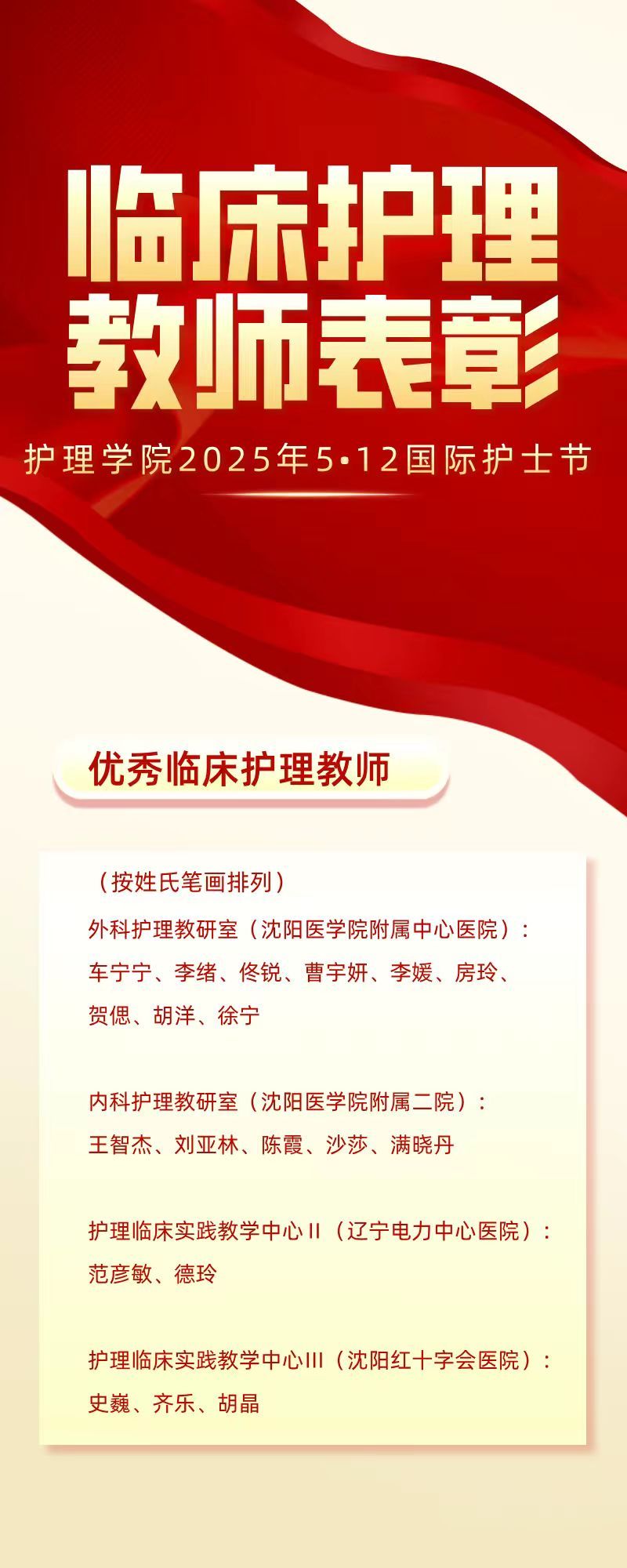 为弘扬南丁格尔精神,激励临床护理教师队伍的专业发展与教学创新,在2025年第114个5.12国际护士节来临之际,yl6809永利集团表彰在教学一线做出突出贡献的临床护理教师。